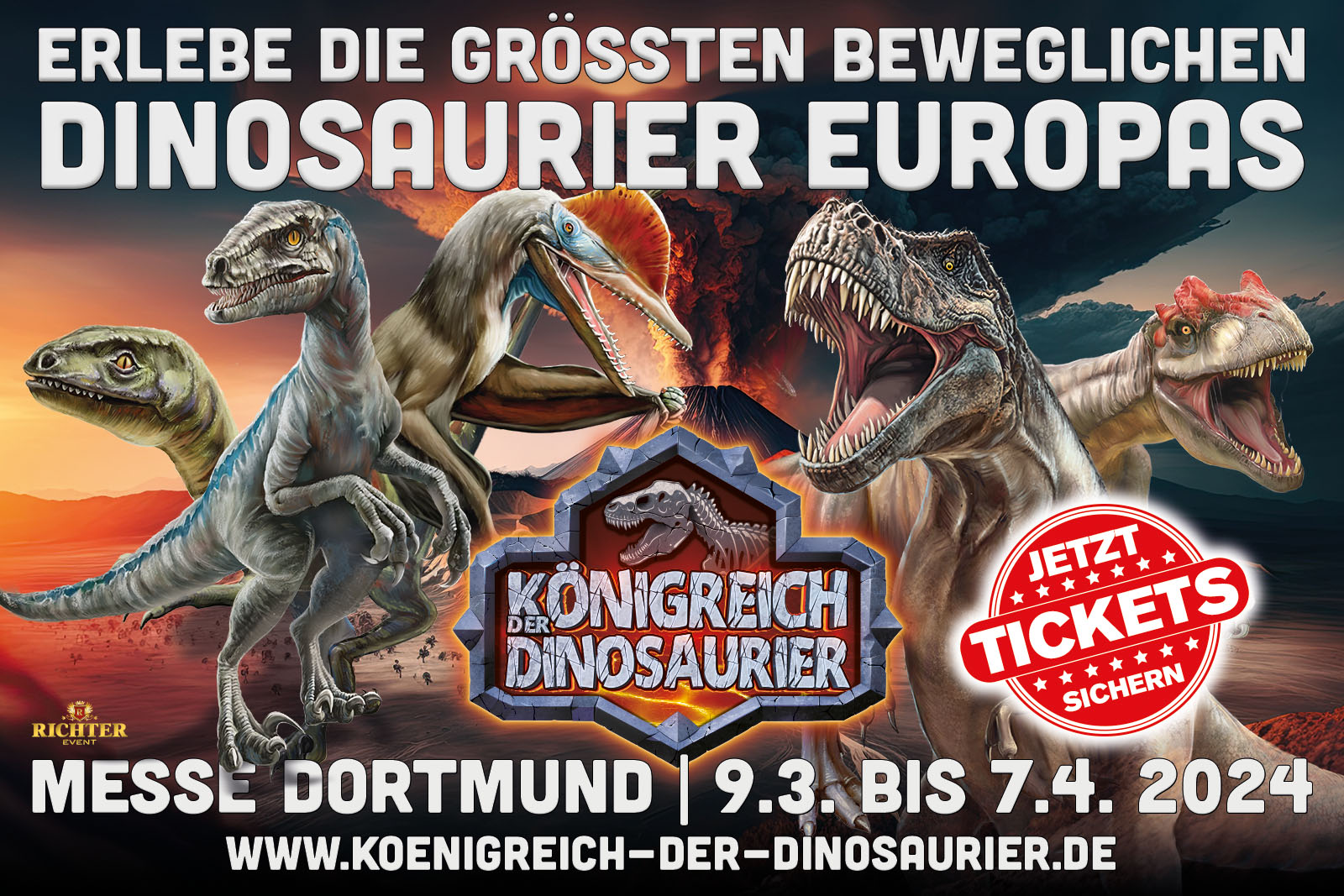 The exhibition was prepared in Germany for over a year and opened in Dortmund in March 2024. The history of dinosaurs was shown over an area of several thousand square meters with the largest mobile dinosaurs ever shown in Europe.
